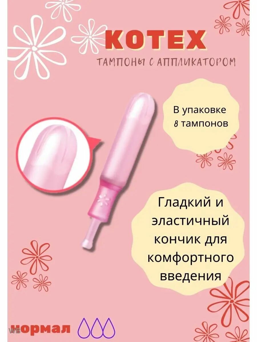 | Плюсы: | Тампоны kotex это самые комфортные тампоны из серии kotex. Яркий дизайн упаковки, сам апликатор тампона гладкий, удобно держать в руке есть фиксатор для пальцев при введени чтобы тампон не выскользнул из рук.Каждый тампон в индивидуальной и яркой упаковки которая легко открывается и поместиться даже в маленькую сумку. Лёгкое и комфортное введение тампона.И что самое важное тампон не чувствуется при движении. Я довольна продукцией |