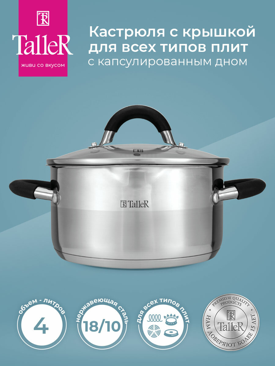 Сохранитькастрюля TALLER Телфорд 4л 22см нерж.сталь стеклянная крышка индукция интересное: