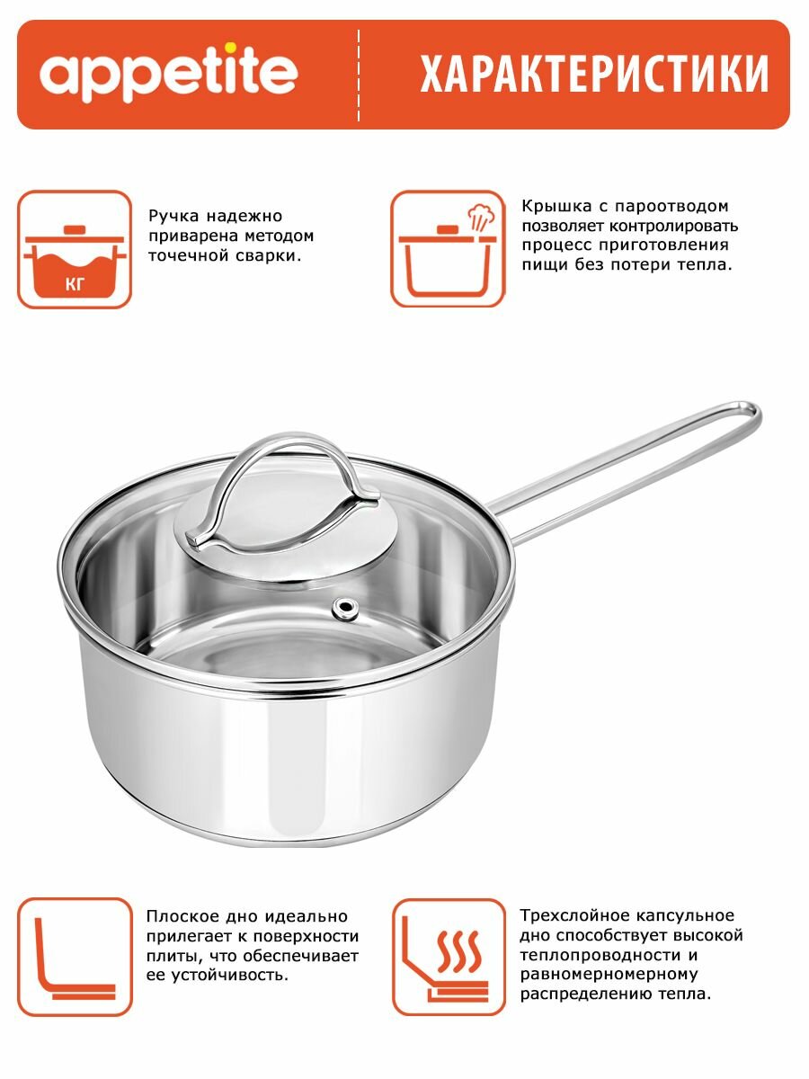 Кастрюля Appetite Pretty, 1.5 л, диаметр 16 см