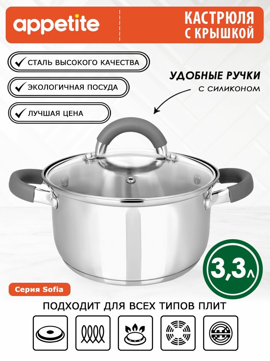 Кастрюля с крышкой Appetite Sofia, нержавеющая сталь, 3,3 л