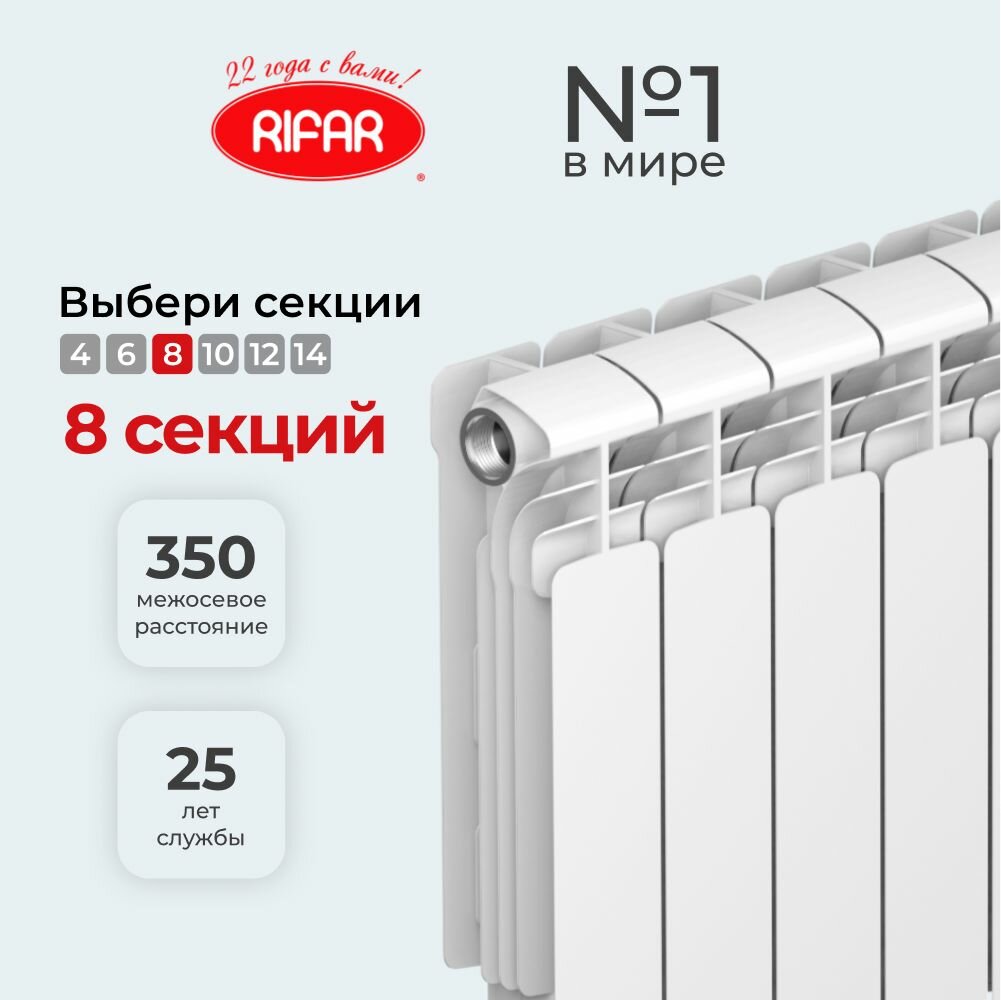 Радиатор алюминиевый RIFAR Alum 350-8, боковое подключение, белый