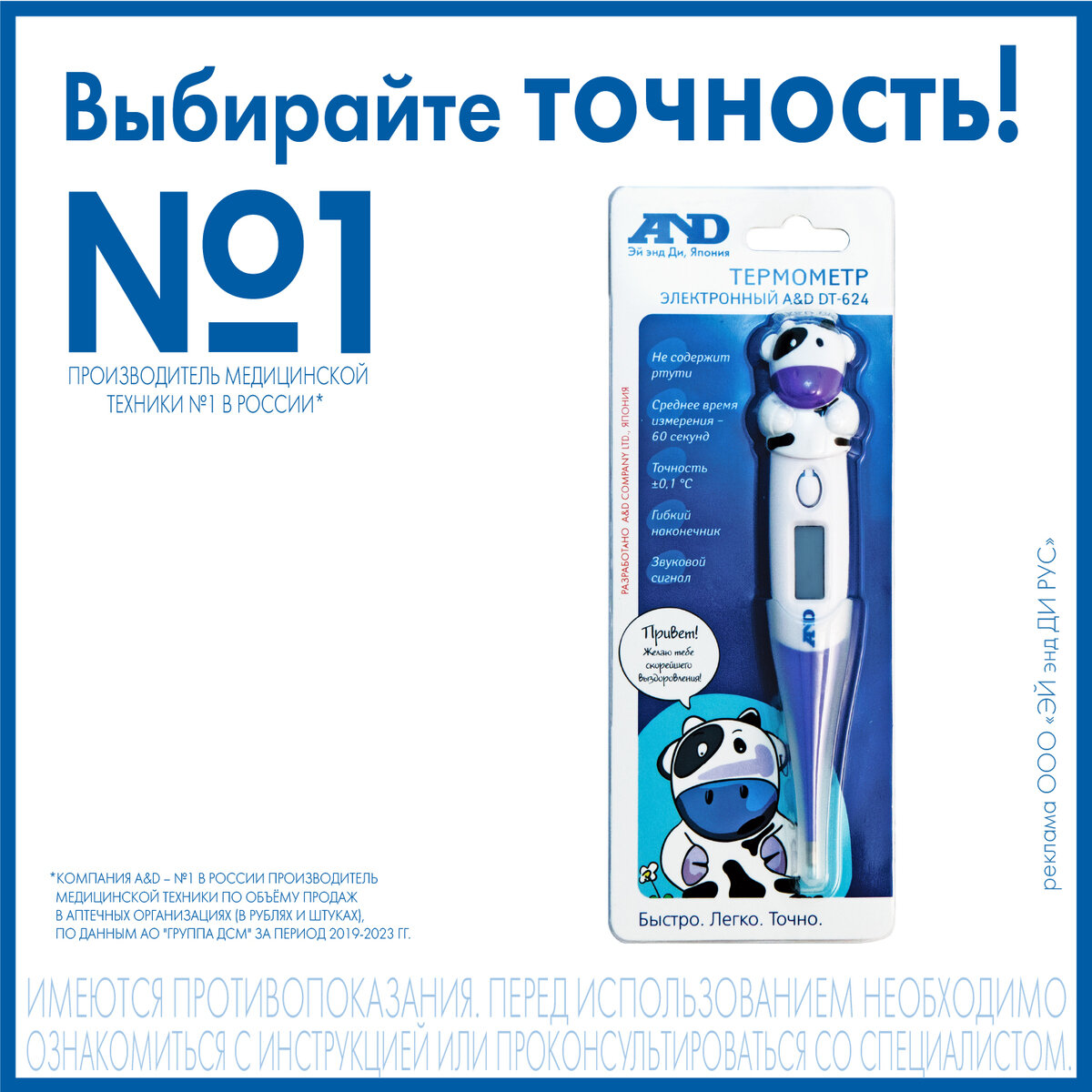 Термометр A&D (Эй энд Ди) DT-624 медицинский электронный Корова