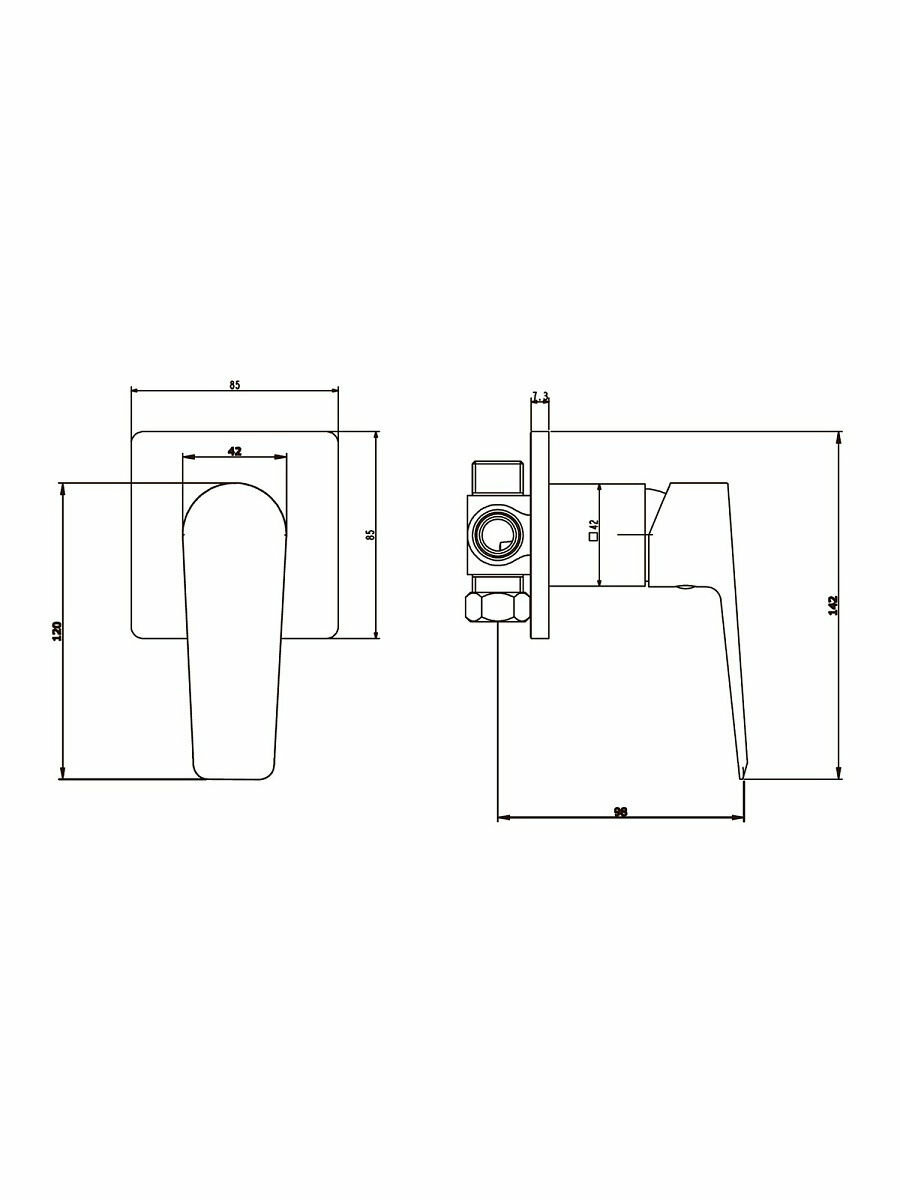 Смеситель для душа ESKO New York NY 83 встраиваемый, однозахватный, с внутренней частью, цвет: хр