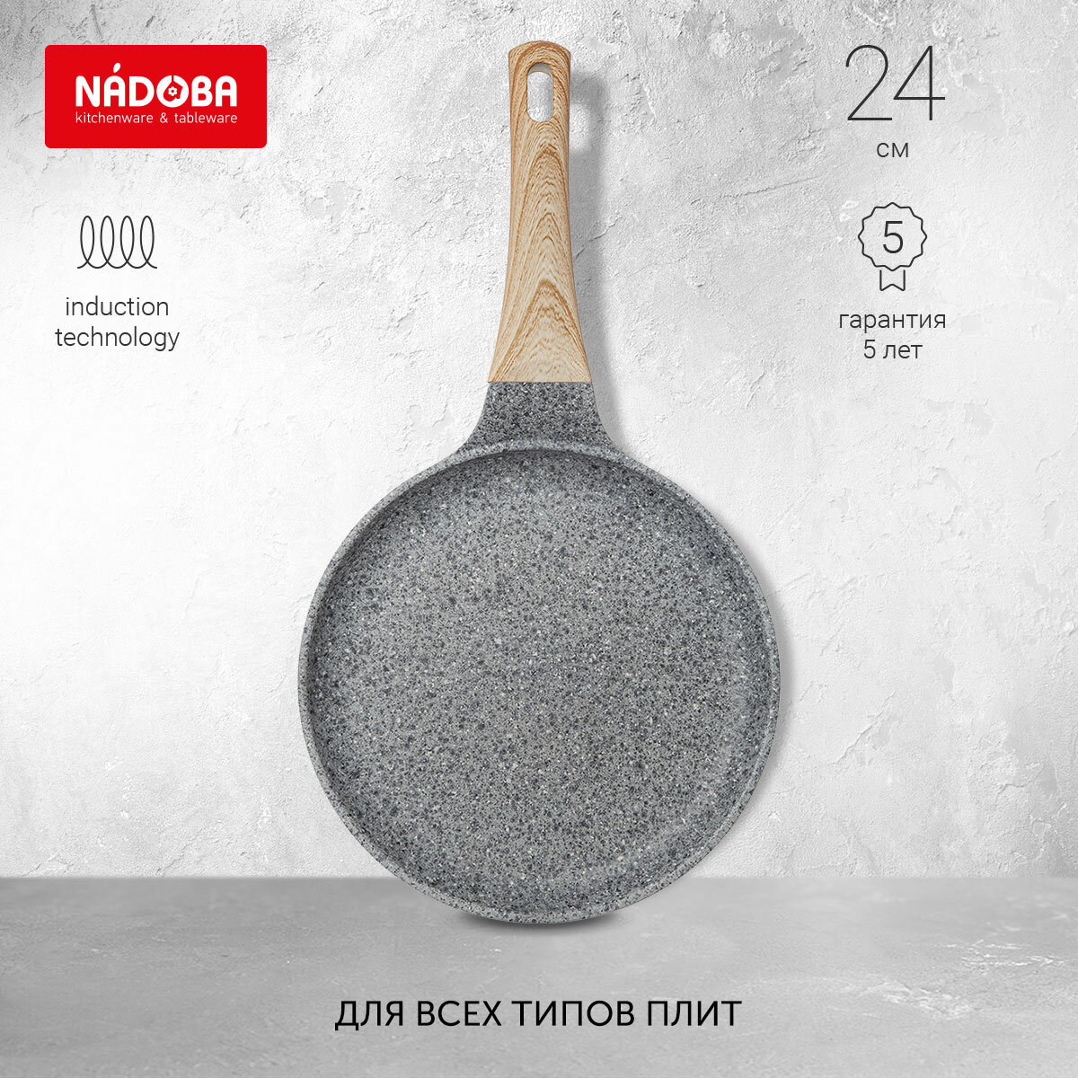 Сковорода блинная, NADOBA с антипригарным покрытием, серая, 24 см (728421)