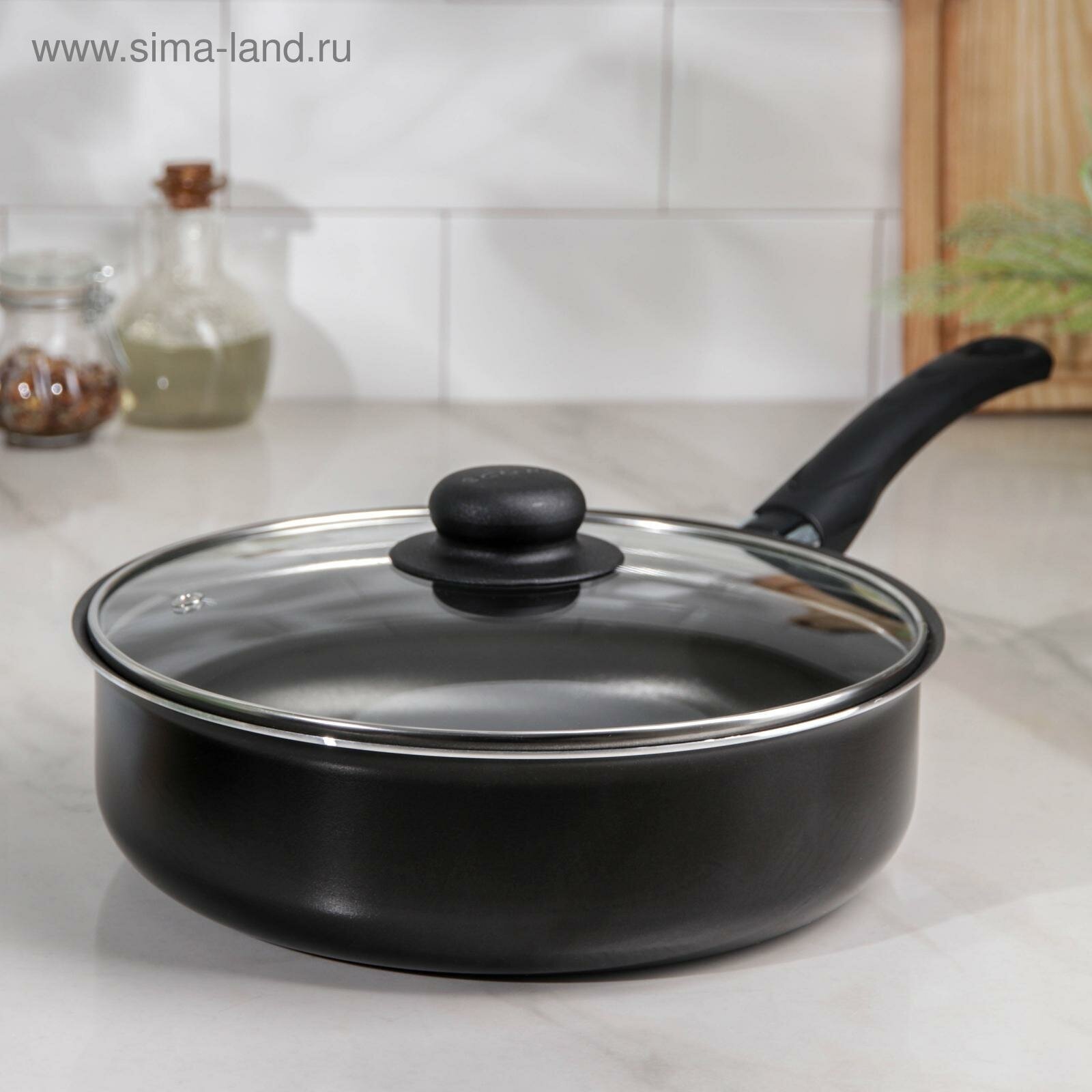 Сотейник Consul, 2,8 л, d24 см, стеклянная крышка, пластиковая ручка, антипригарное покрытие, цвет чёрный