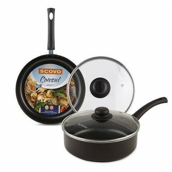 Сотейник 24см SCOVO Consul RC-020, алюминий, антипригарное, черный