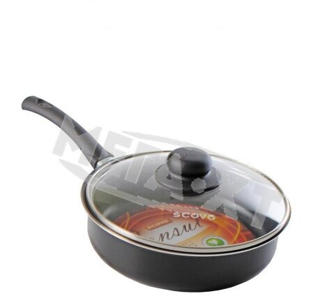 SCOVO Сотейник Consul, 3,7 л, d=26 см, стеклянная крышка, пластиковая ручка, антипригарное покрытие, цвет чёрный