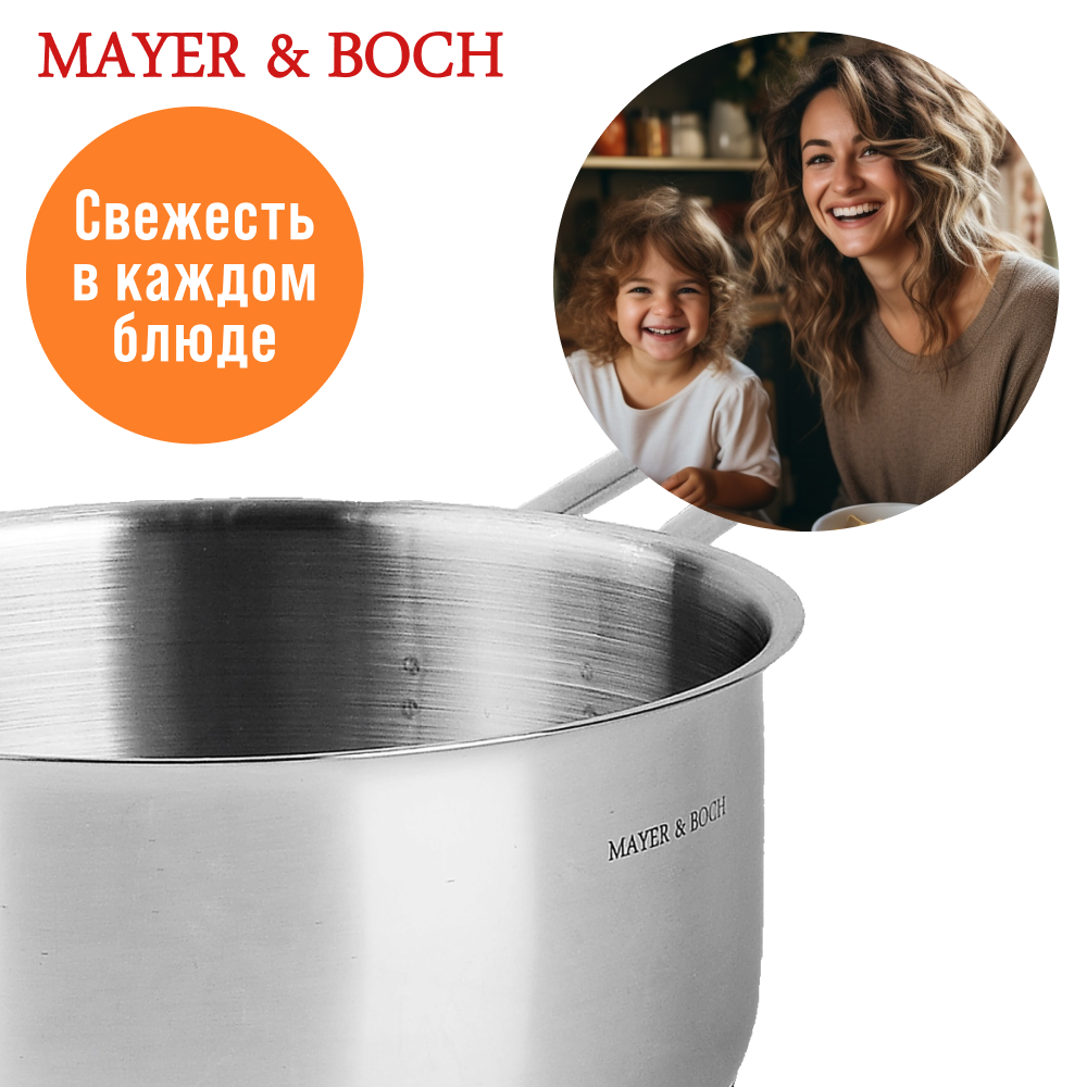 Ковш MAYER&BOSCH из нержавеющей стали, для индукционной плиты, 3,2л 30985