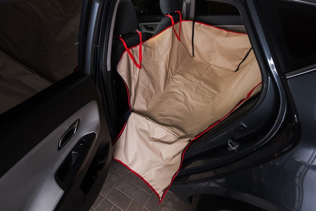Автогамак для перевозки собак с защитой задних дверей автомобиля, AvtoTink 202х150 см, бежевый интересное: