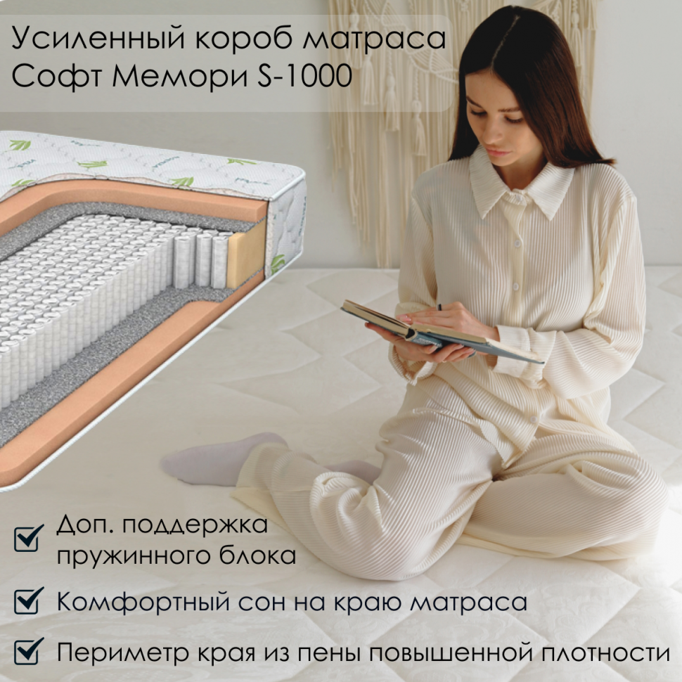 Матрас Everest Софт Мемори S1000 - пружинный, с эффектом памяти, memory form, очень мягкий, анатомичный, высокая комфортность 185х210