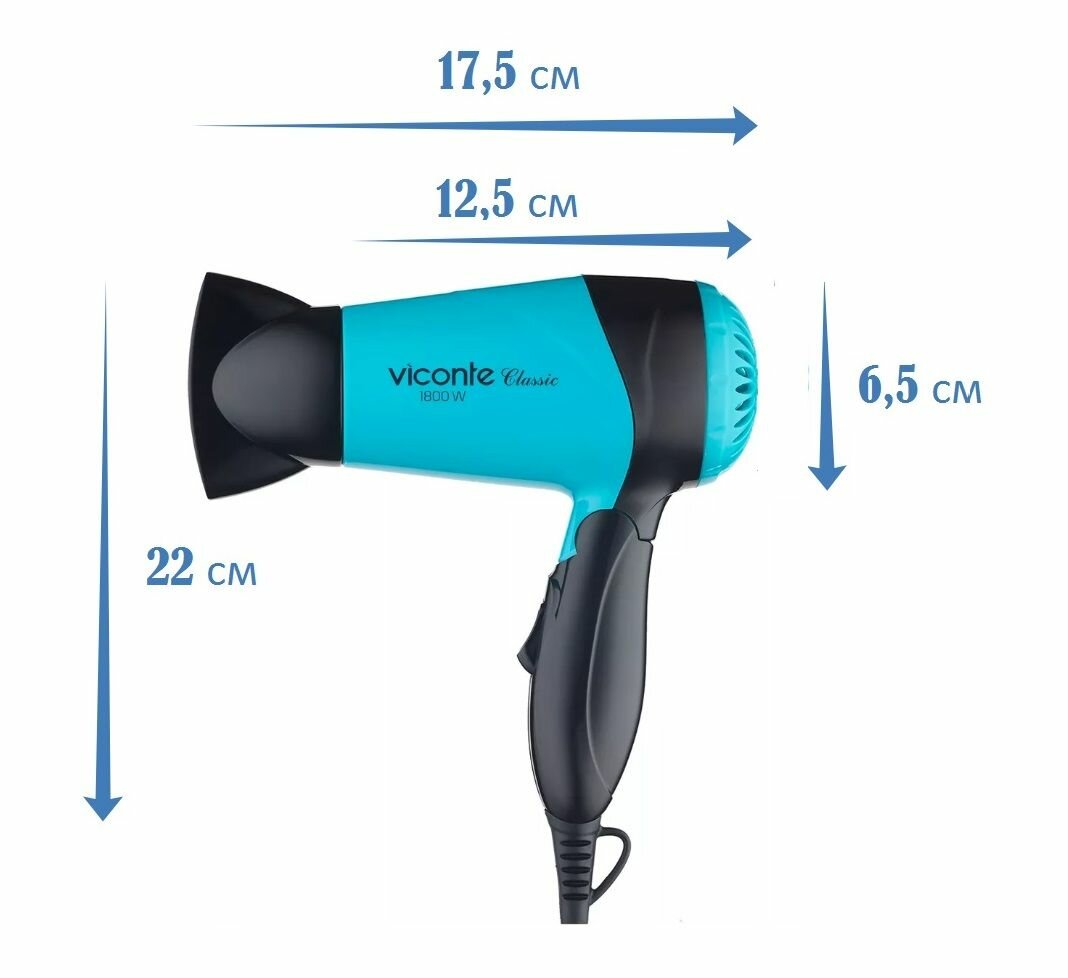 Фен для волос дорожный складной Viconte 1800 Вт 2 режима скорости