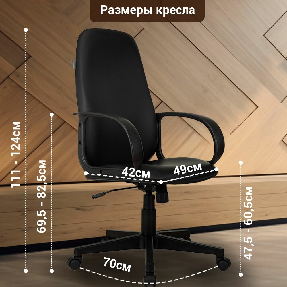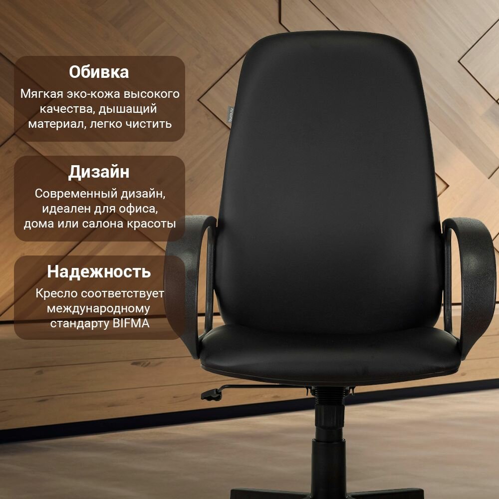 Кресло компьютерное рабочее Бюрократ Ch-808AXSN на колесах, с подлокотниками, низкой спинкой, до 120 кг, экокожа черное