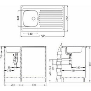 Кухонная мойка Alveus Classic 70 NAT 1000х600х155 нержавеющая сталь, с сифоном (1108745)