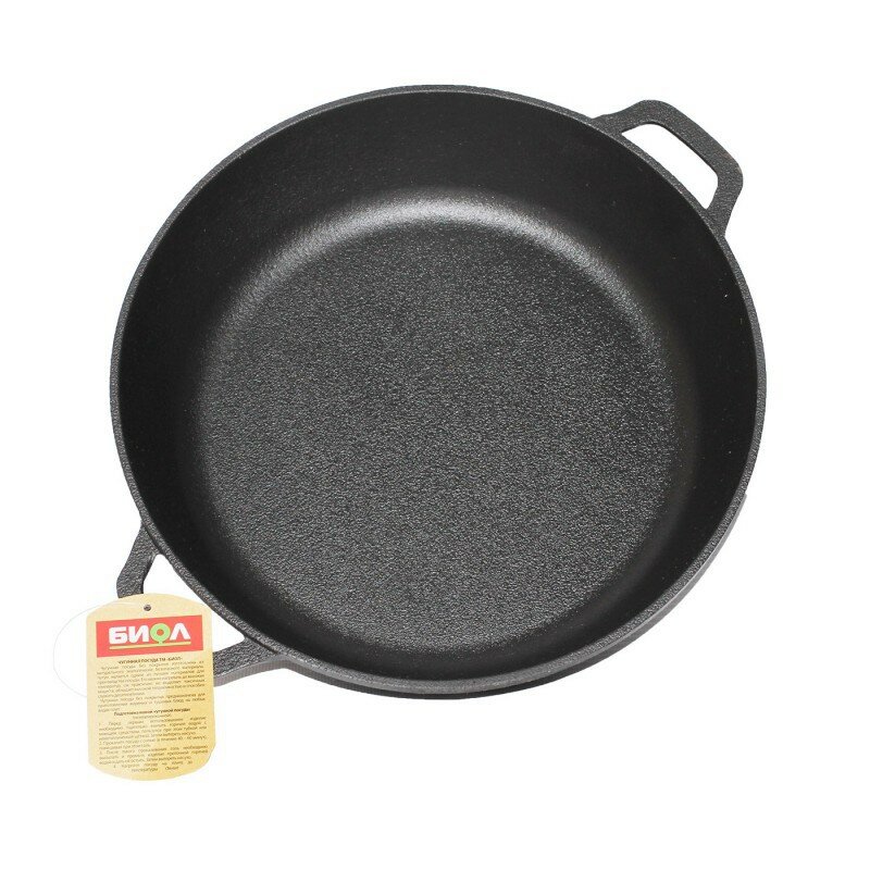 | Плюсы: | Качество упаковки-картонная коробочка с ручкой! Сама сковородка- гладкая, без вмятин царапин и шероховатостей. Смазала льняным маслом и прогрела несколько раз на плите. Ничего не пригорает, не ржавеет. Он а у меня не первая чугунка из БИОЛ- супер марка! все сковороды сменила и еще кастрюлю с крышкой докупила ! и 28 см - это хороший размер! Для тушения объемных овощей(чтобы ничего не вываливалось), для плова тоже класс.. |