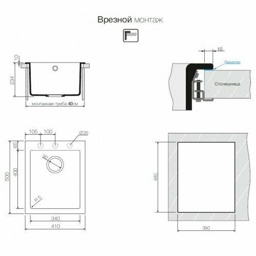 Кухонная мойка OMOIKIRI Bosen 41-EV 41х50см искусственный гранит/эверест