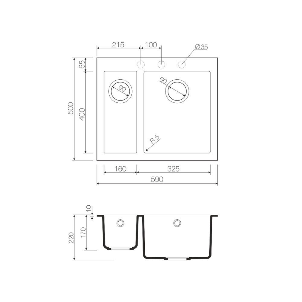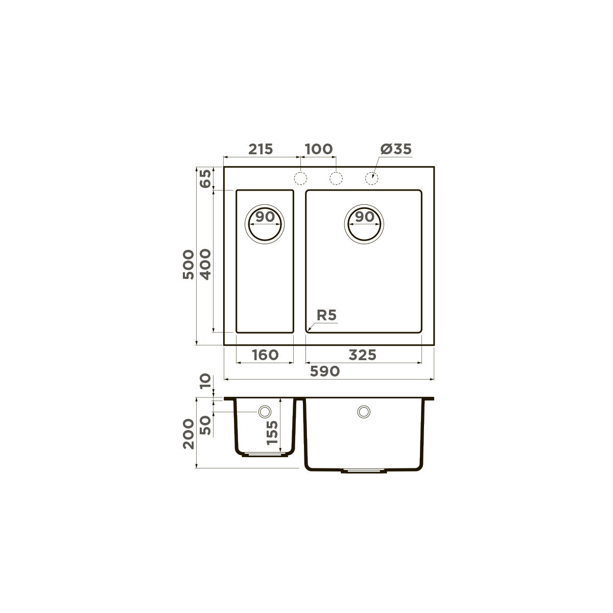 Кухонная мойка двухчашевая OMOIKIRI Bosen 59-2-BL, искусственный гранит/черный/основная чаша справа