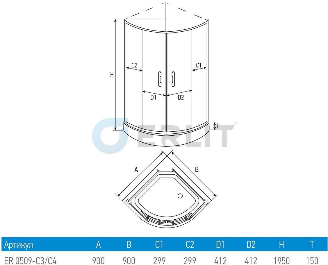 Душевой уголок Erlit ER0509-C3 (900*900*1950)