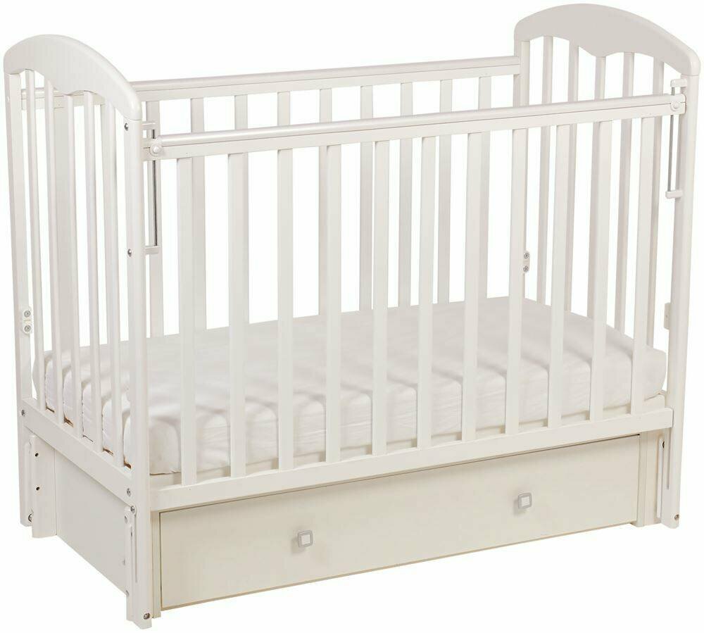 Детская кроватка «Фея 328» на маятнике, с ящиком, цвет белый