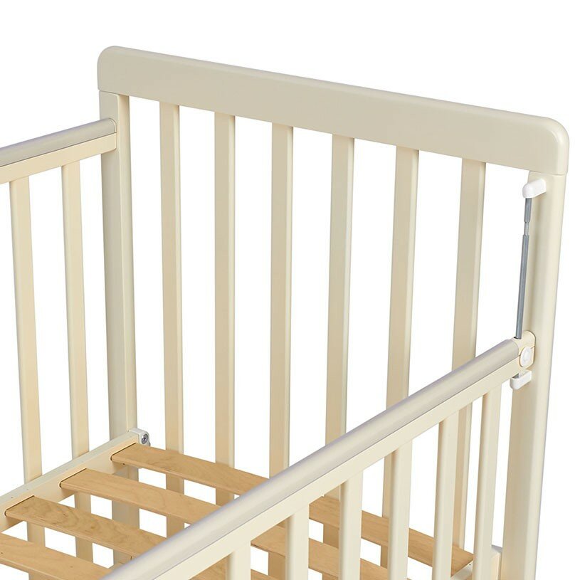 | Отзыв: | Пока ребенок совсем маленький, мы поставили дно на первое положение. Потом опустим. Если мне нужно взять малыша, я просто нажимаю на кнопку и боковинка опускается. |