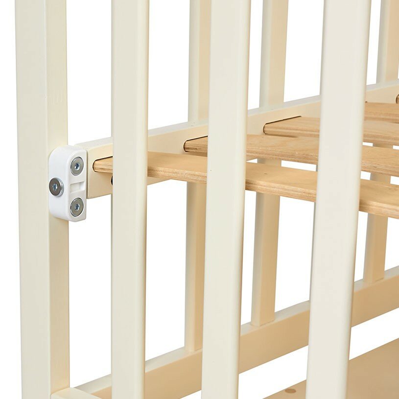 | Плюсы: | 2 высоты дна кроватки. Вместительный выдвижной ящик. |