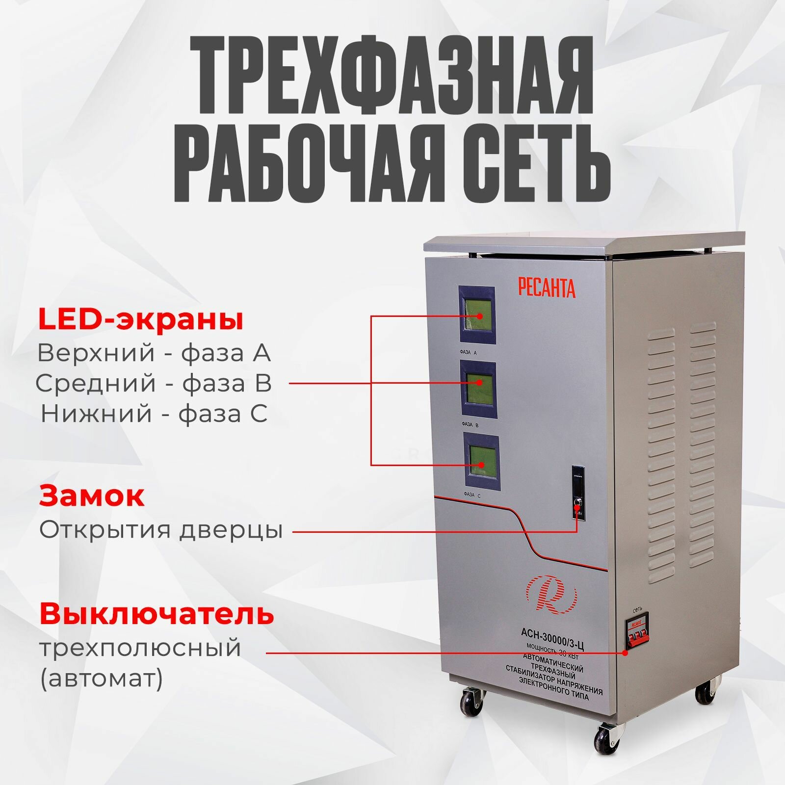 Стабилизатор напряжения Ресанта АСН-30000/3-Ц трехфазный серый (63/4/18)