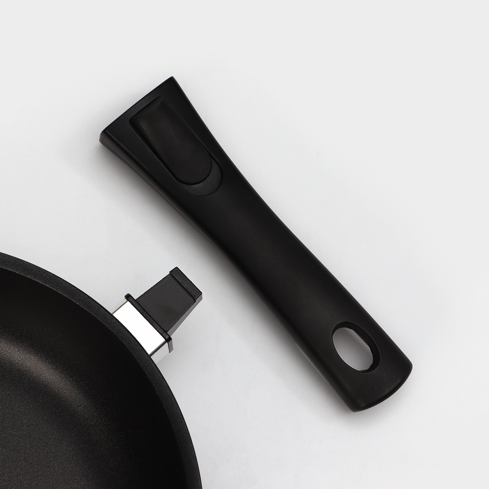 Сковорода «Традиция», d=22 см, стеклянная крышка, съёмная ручка, антипригарное покрытие, цвет чёрный