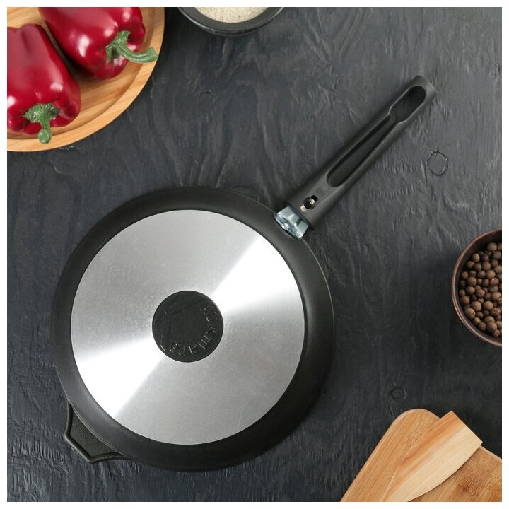 Купить Сковорода KUKMARA «Традиция», d=24 см, стеклянная крышка, съёмная ручка, антипригарное покрытие, чёрный