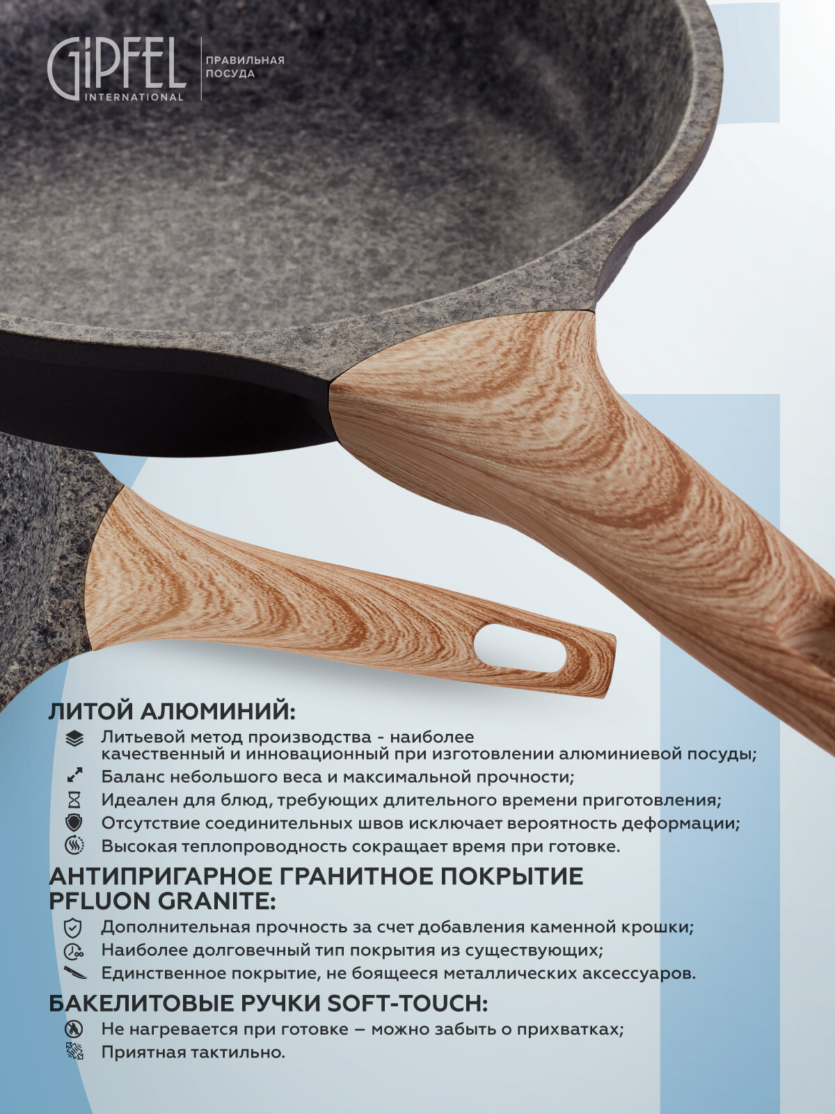 Сковорода алюминий, 30 см, антипригарное покрытие, Gipfel, Pfluon Granite, 0569, бакелитовая ручка, Oliver, индукция