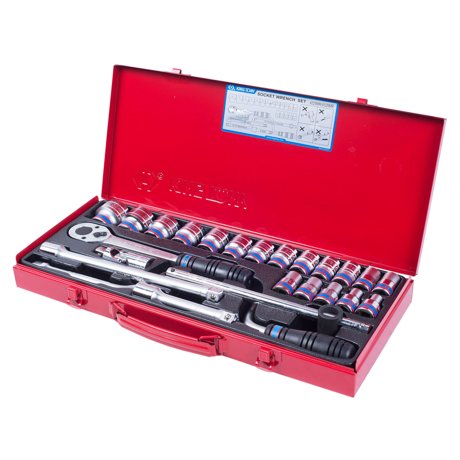 Kingtony Набор торцевых шестигранных головок с принадлежностями 1/2", 10-32 мм, 24 предмета 4325MR