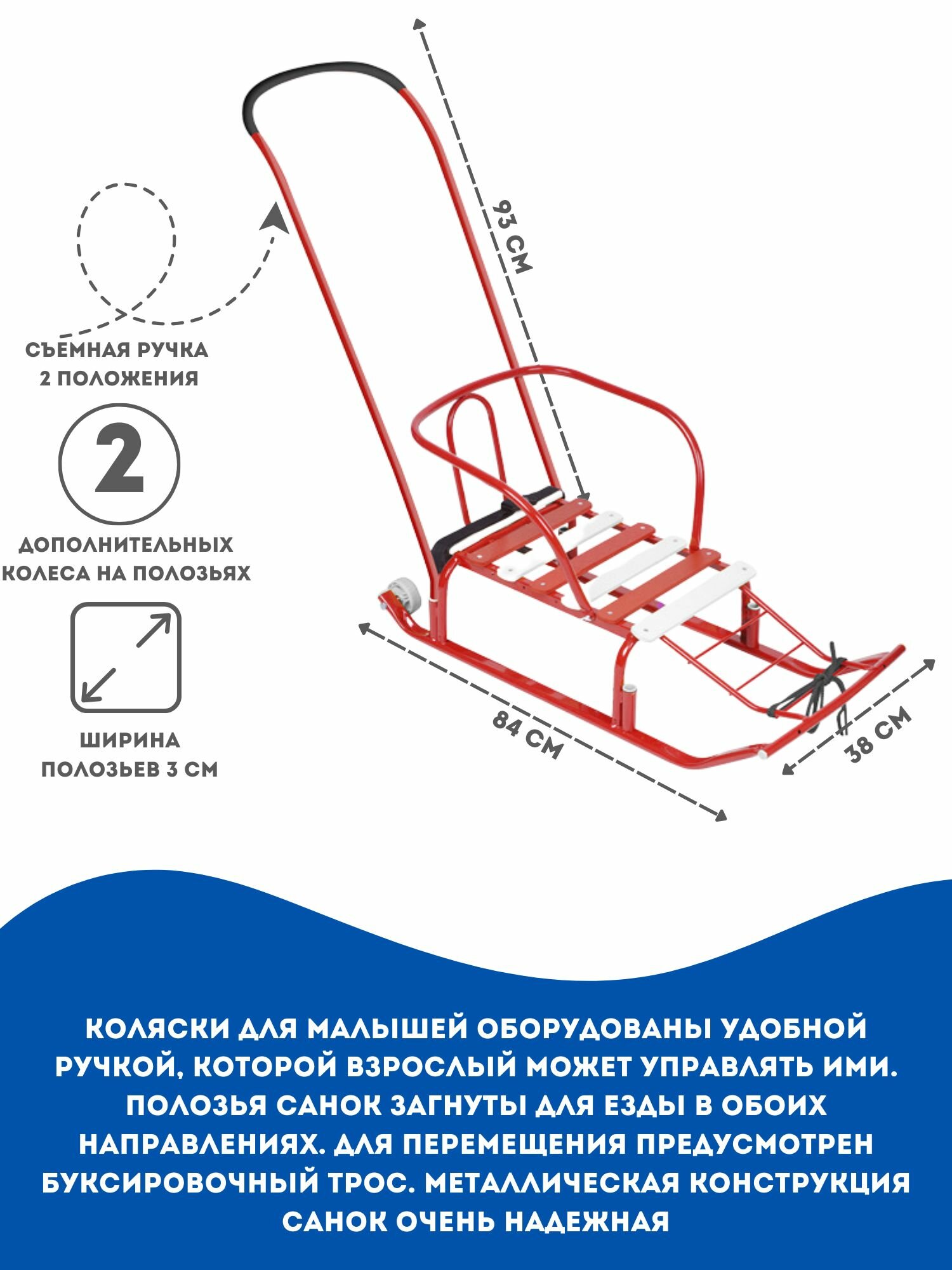 Санки детские Ника Тимка 5 Комфорт+ с колёсами, спинкой и родительской ручкой, алые