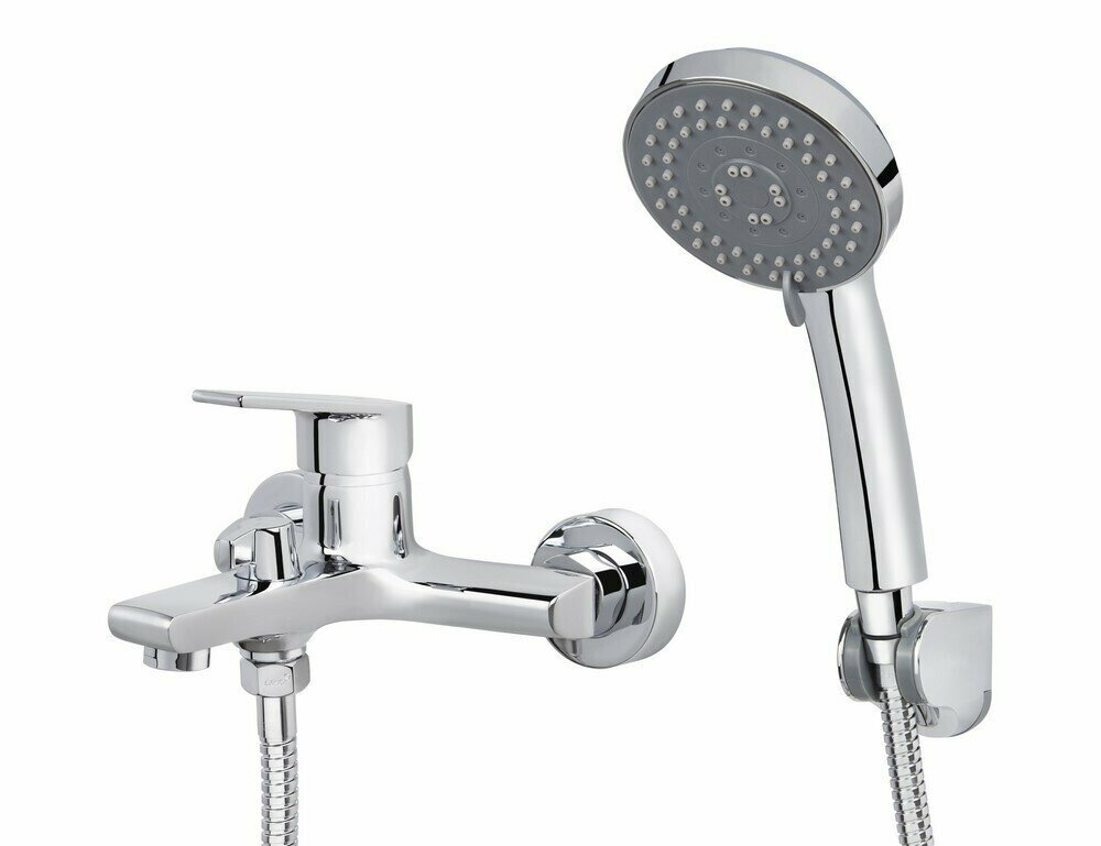 Смеситель для ванны и душа Kaiser (Кайзер) Eco 00022 однорычажный с лейкой и шлангом, настенное крепление, хром