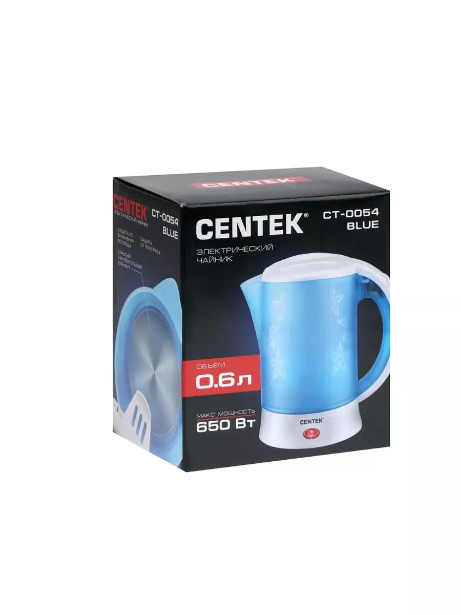 Электрические чайники Centek Чайник электрический Centek CT-0054 Blue, пластик, 0.6 л, 650 Вт, бело-синий