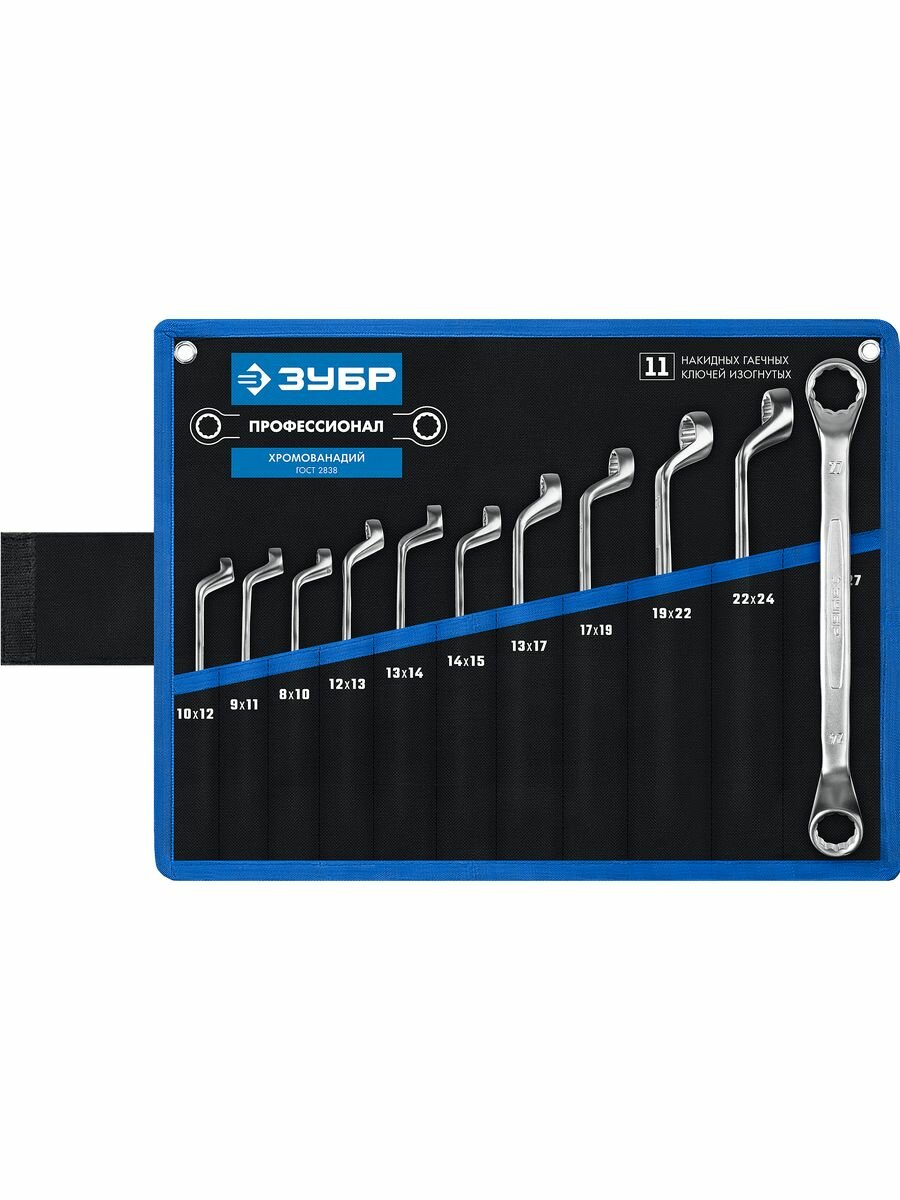 Набор накидных гаечных ключей изогнутых 11 шт, 8 - 27 мм, ЗУБР
