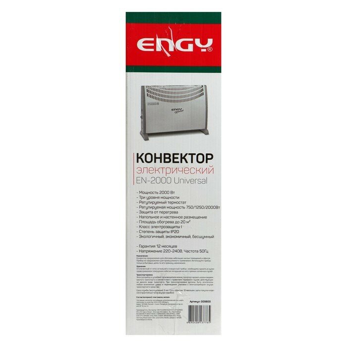 Обогреватель ENGY EN-2000 Universal, конвекторный, 2000 Вт, 25 м², белый 7365694