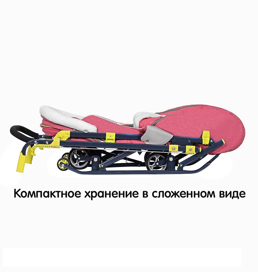 Санки тяжелые, громоздкие. Не входят в среднестатистический багажник поперек, приходится складывать кресло в салоне. чтоб перевести спинку санок, нужно с заметным усилием потянуть на себя "ручку". Ни на прогулочной, ни на "большой" коляске 3 в 1 для изменения положения спинки таких усилий прикладывать не доводилось. Не дай бох вам постирать чехол! Паралон внутри не зафиксирован, потом не вскрывая, не расправите. Иногда, когда катишь на колесах по снежной каше (бывает такая необходимость), то есть приходится прям прикладываться, изредка соскакивает фиксатор. Кароч, санки устойчиво отдают советским автопромом, большой, тяжелой Волгой ГАЗ 24, где приходилось по нескольку раз хлопать дверьми, чтоб их закрыть. Будто "завод делает для страны, а не для людей".