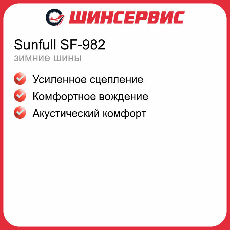 Ниже Вы можете прочитать отзывы на Зимняя нешипованная шина Sunfull SF-982 245/45 R17 99H, ознакомится с подробными характеристиками, посмотреть интересные обзоры и фотографии на Зимняя нешипованная шина Sunfull SF-982 245/45 R17 99H.