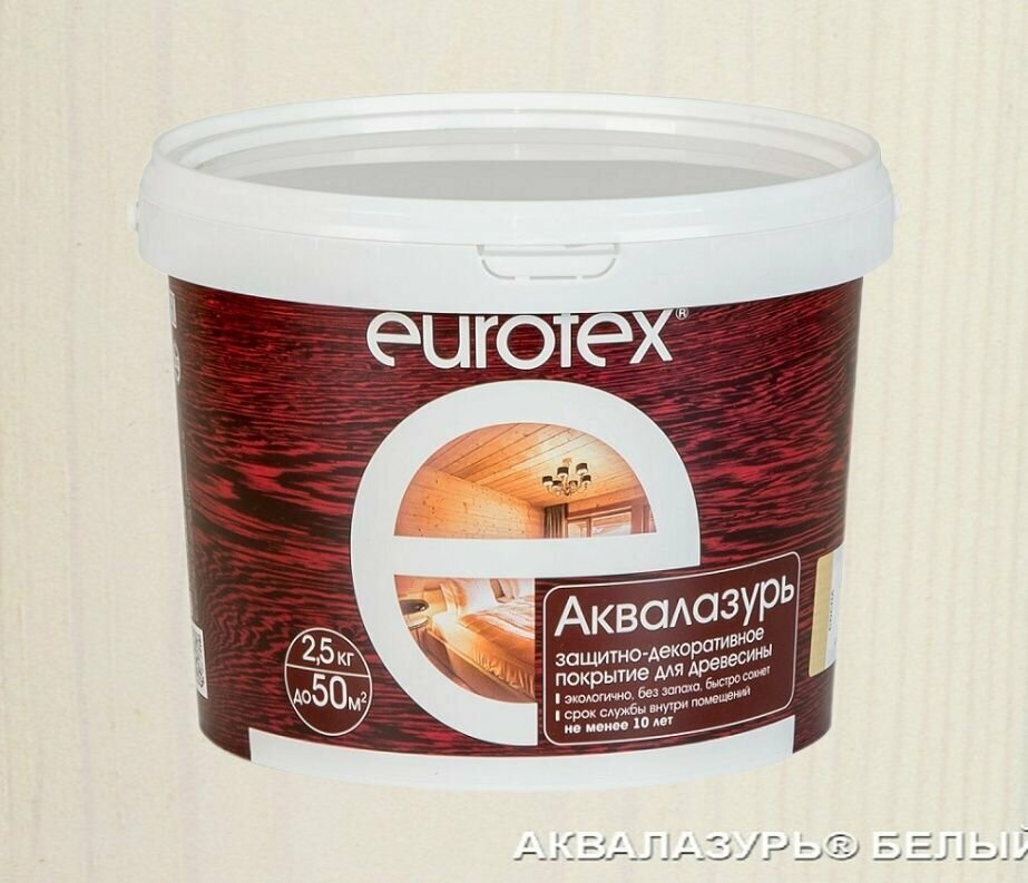Антисептик Eurotex Аквалазурь 2.5кг Белый Акриловый для Внутренних и Наружных Работ / Евротекс Аквалазурь.*