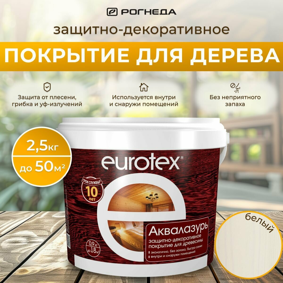 Пропитка для дерева EUROTEX Аквалазурь белый 2,5л (Рогнеда)