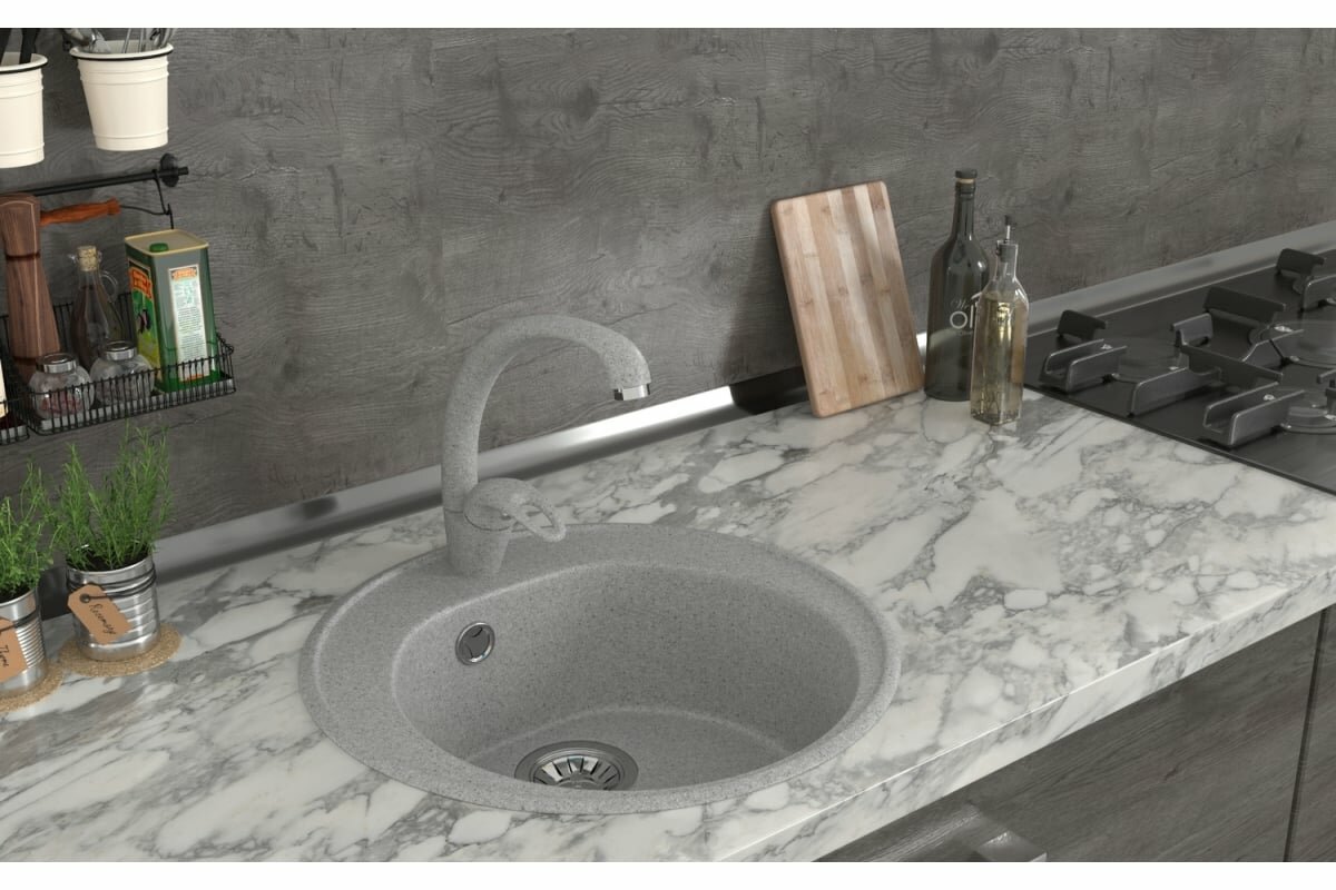 Мойка для кухни из искусственного мрамора круглая MIXLINE ML-GM 09, с сифоном, антрацит