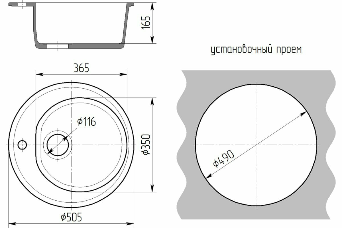 Раковина для кухни / Мойка для кухни Mixline ML-GMS02 круглая, черный