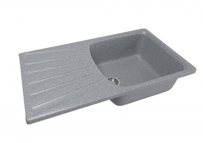 Мойка для кухни из искусственного мрамора, прямоугольная, с крылом, с сифоном, MIXLINE ML-GM18, серая