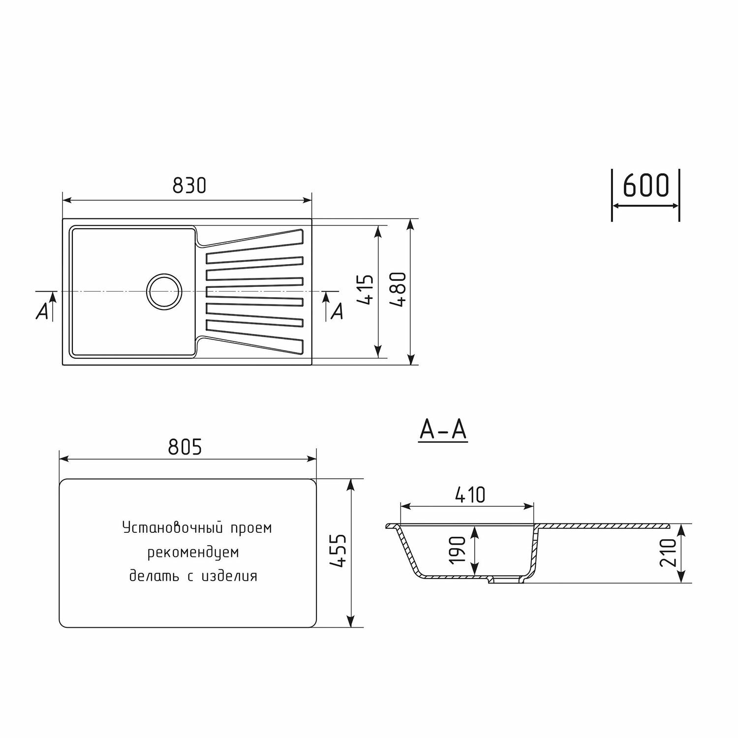 Мойка ML-GM20 с крылом, ультра-черная (344), 830*480*190мм NEW