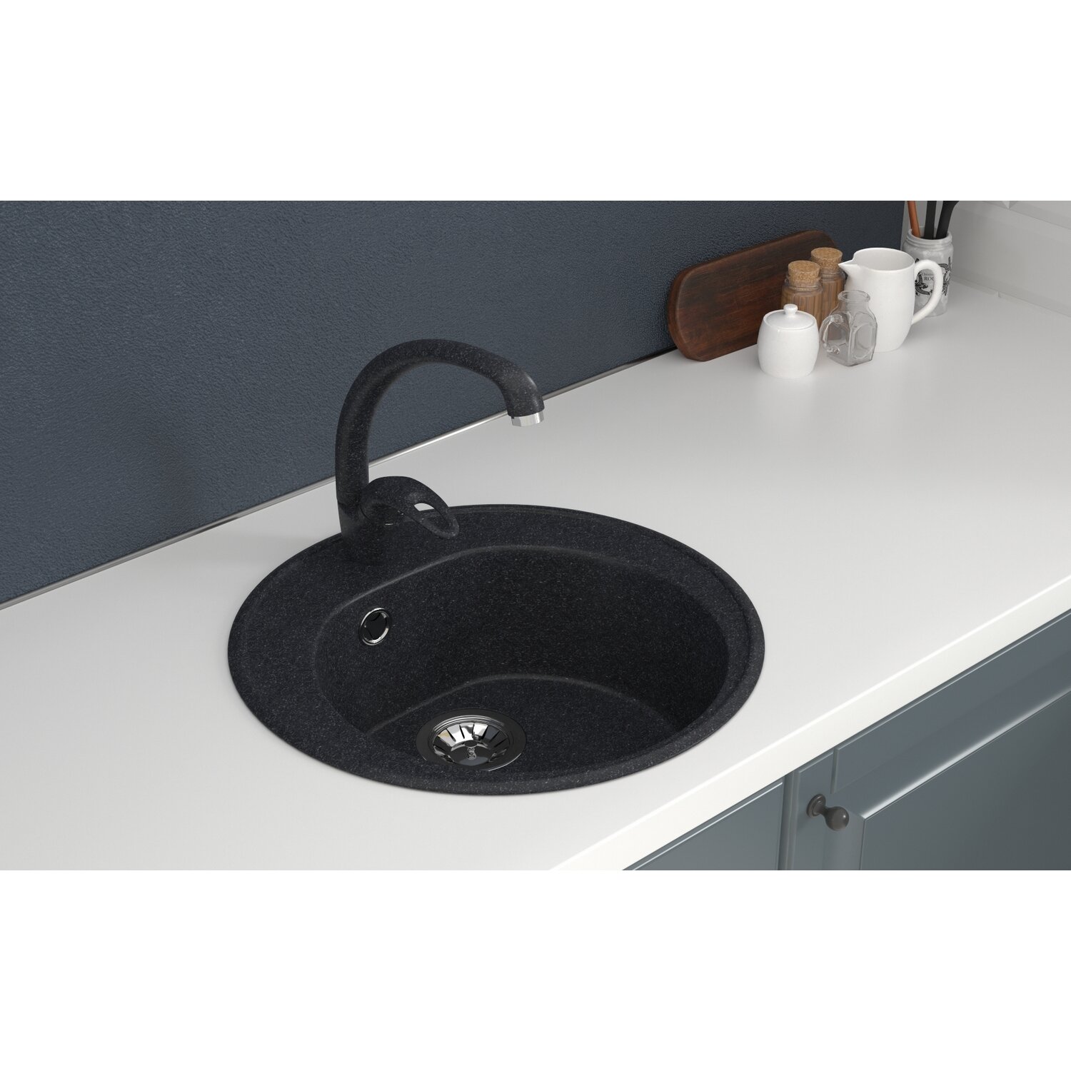 Мойка для кухни из искусственного мрамора круглая MIXLINE ML-GM 09, с сифоном, антрацит