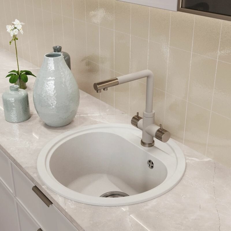 Мойка Ника ML-GM09 Круглая, Белая (331), 490ММ (Глуб. Чаши 185).