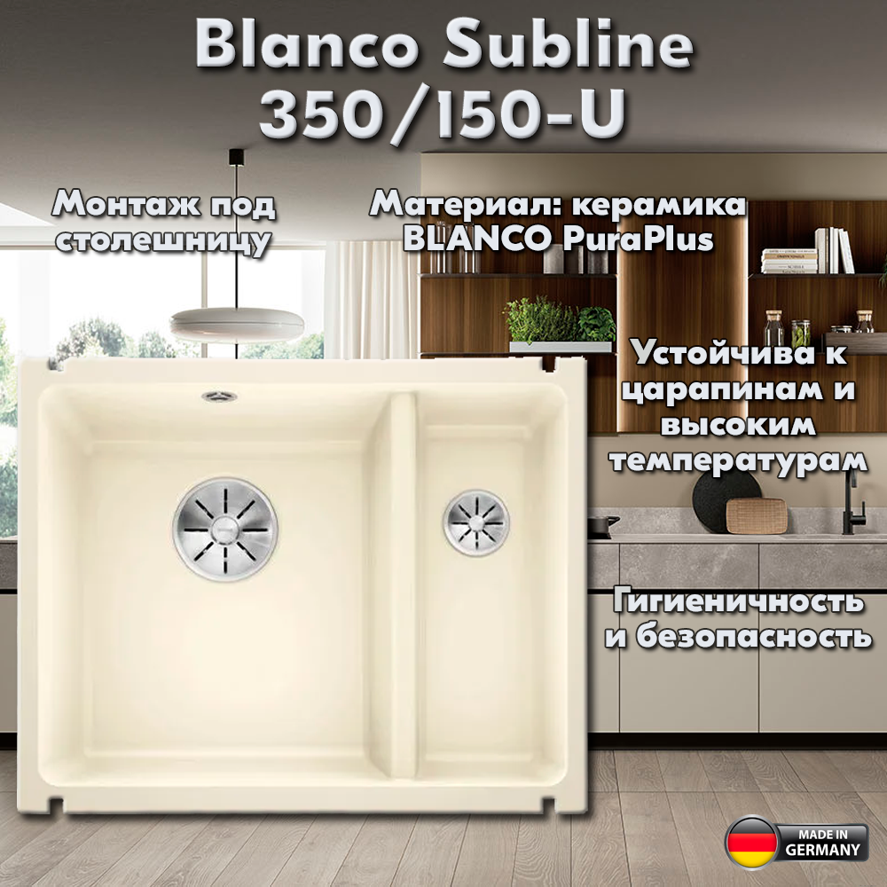 SUBLINE 350/150-U Керамика InFino цвет глянцевый магнолия мойка