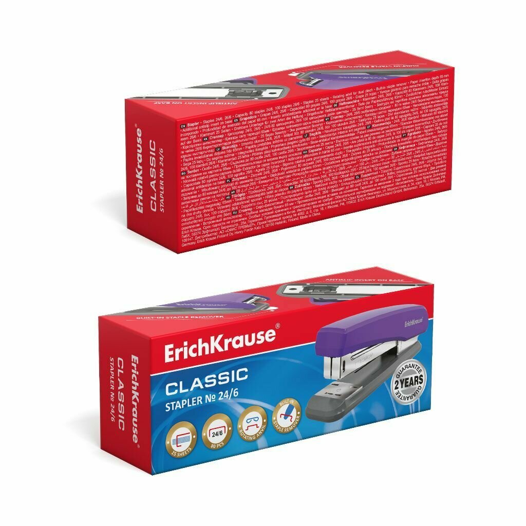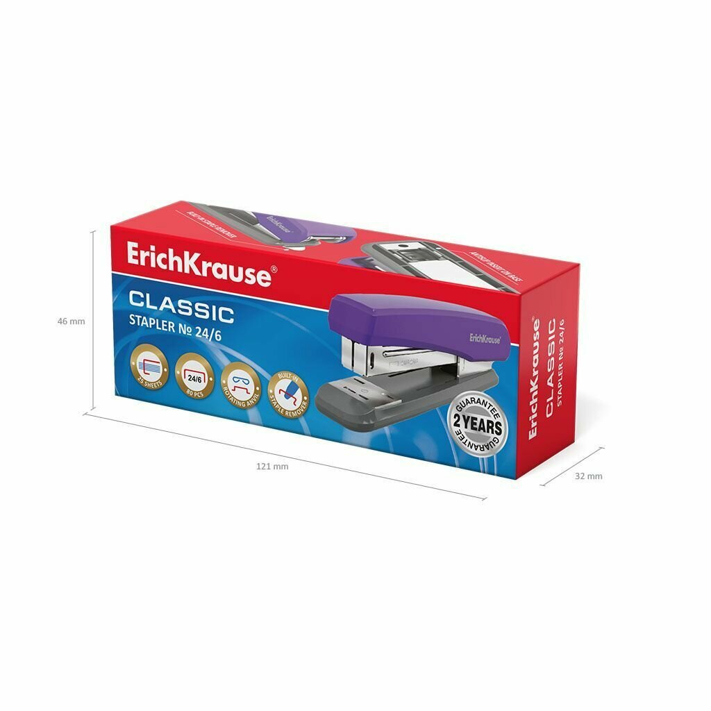 Степлер Erich Krause Classic, №24/6, до 25 листов, серо-фиолетовый (47286)
