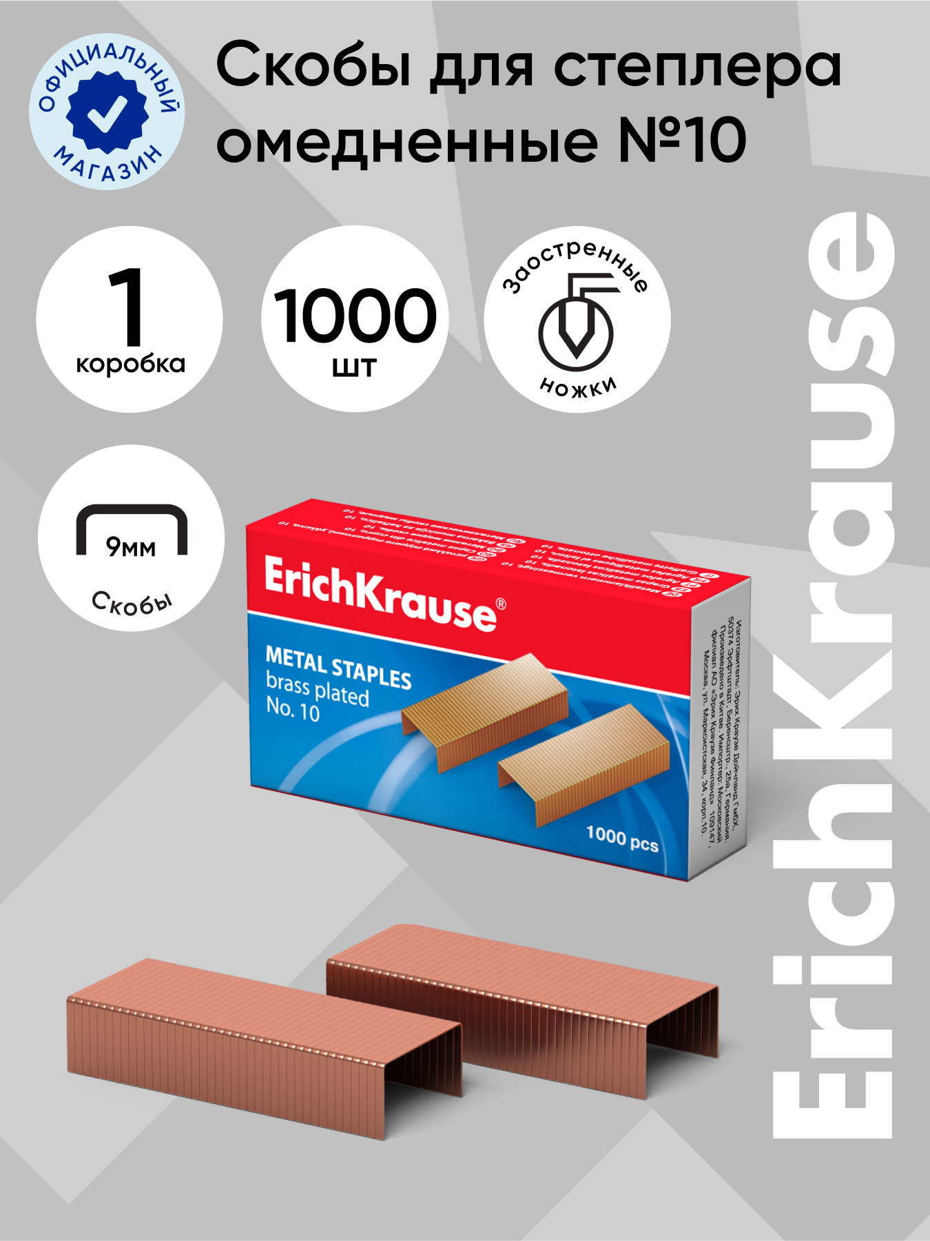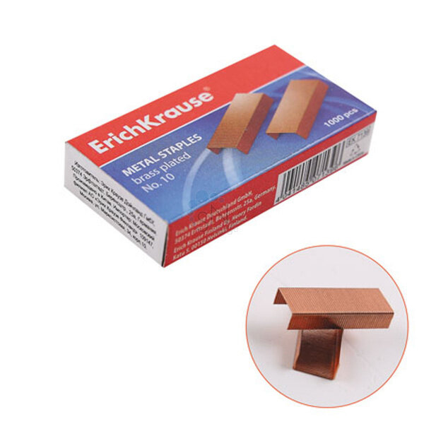 Скобы для степлера ErichKrause № 10, омедненные, 1000 штук