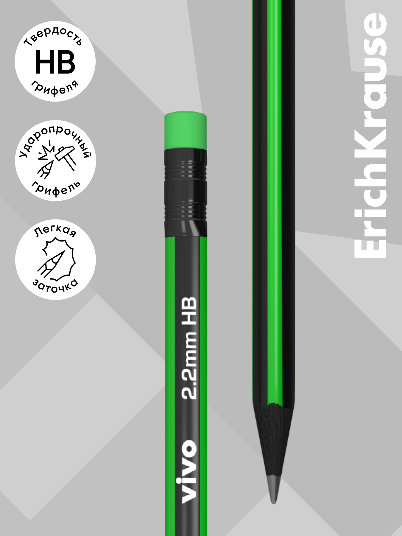 Чернографитный трехгранный карандаш с ластиком ErichKrause VIVO HB (в блистере по 4 шт.) интересное: