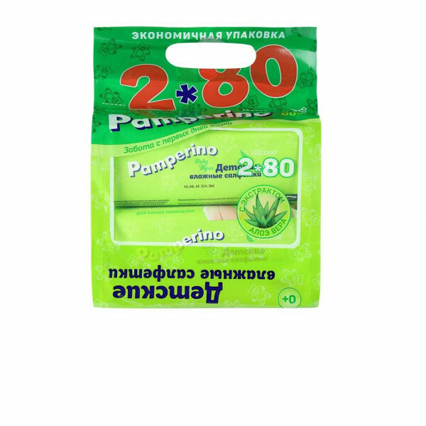 PAMPERINO Влажные салфетки Pamperino детские, с алоэ вера, 2 упаковки по 80 шт. микс