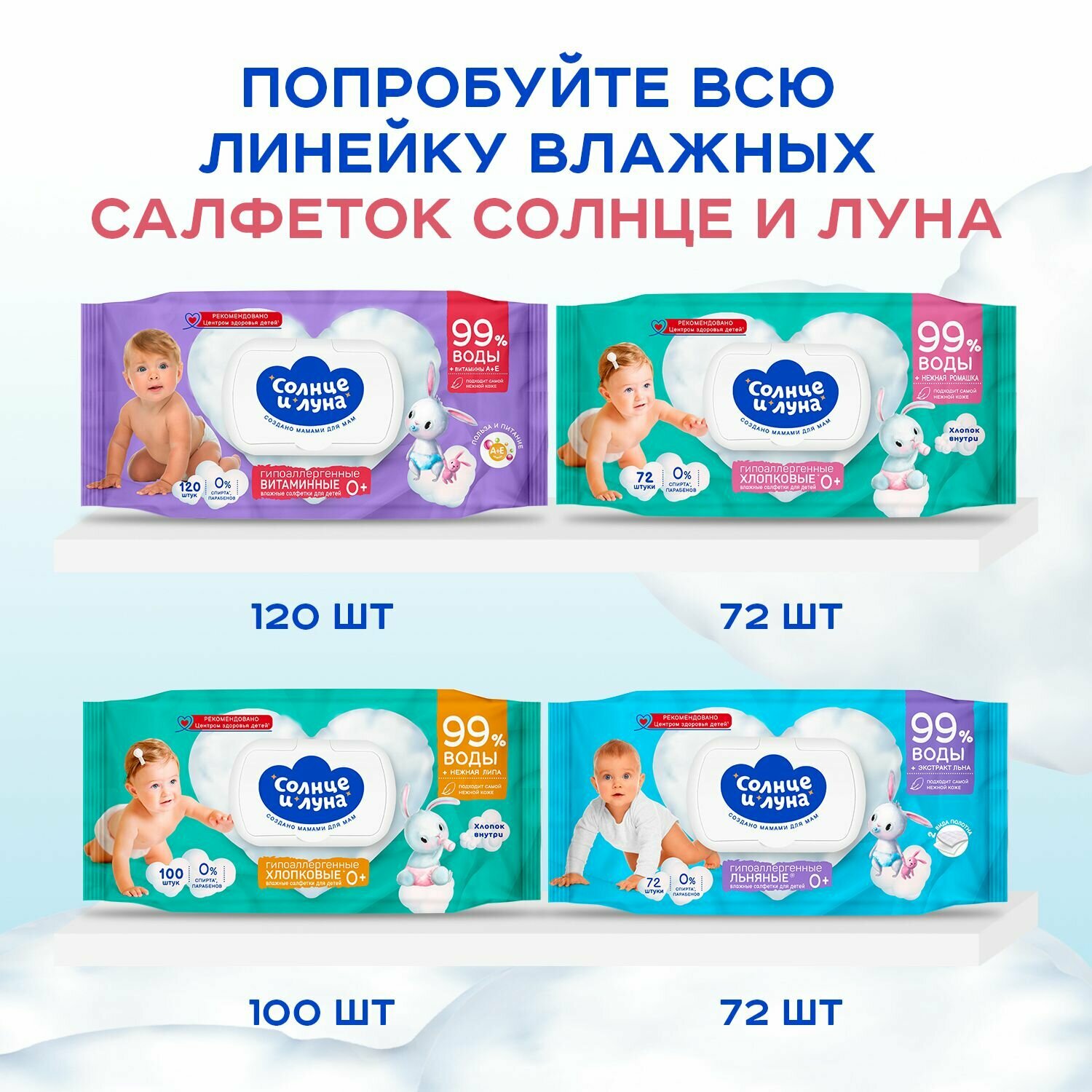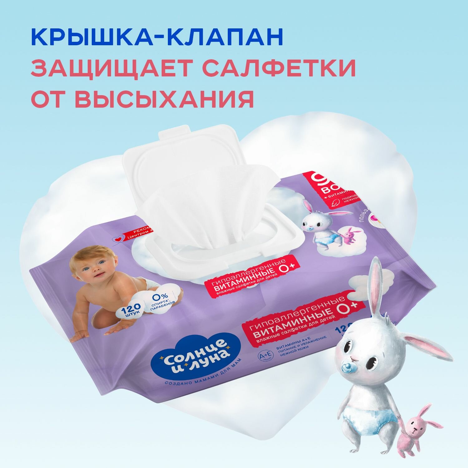 Влажные салфетки детские витаминные 720 шт (120 шт х 6), солнце И луна